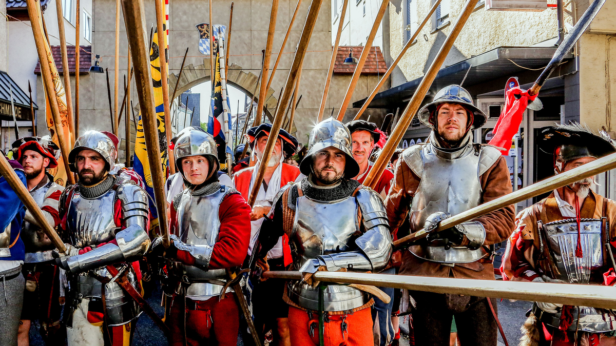 Willkommen in der Zeit des Mittelalters, der Bürgerwehren und der Fanfarenzüge. Das Peter-und-Paul-Fest ist viel mehr als ein großes historisches Stadtfest – es ist eine Zeitreise für die ganze Familie. Jedes Jahr am ersten Juli-Wochenende lädt dass Treiben von 4.000 historisch Gewandeten die Besucher zum Beobachten, Staunen und Mitmachen ein. Szenische Darstellungen und ein buntes Lagerleben von Landsknechten, Stadtwache, Handwerkern und Bauern geben Einblicke in den Alltag einer mittelalterlichen Stadt. Musiker, Gaukler, Fanfaren und Bürgerwehren bieten ein abwechslungsreiches Programm. Die Ursprünge des Festes Die Belagerung Brettens anno 1504 durch den Herzog von Württemberg sowie der geglückte Ausfall der Belagerten bilden den geschichtlichen Hintergrund für das Treiben in der spätmittelalterlichen Stadt, in der auch die Traditionen der Bürgerwehr, der Fanfarenzüge und des Schäfersprungs im Festprogramm nicht zu kurz kommen. Rund 50 historische Gruppen aus nah und fern sind am Peter-und-Paul-Fest beteiligt, das die Vereinigung Alt-Brettheim in Kooperation mit der Stadt Bretten veranstaltet. Die Festtage stehen jeweils unter einem eigenen Motto: am Freitag heißt es „Brettheim rüstet sich“, am Samstag „Brettheim verteidigt sich“ und am Sonntag „Brettheim huldigt dem Kurprinzen und feiert seinen Sieg“ und am Montag „Brettheim feiert“. Besondere Aufmerksamkeit widmen die Programmgestalter auch Familien mit Kindern: Am Samstagnachmittag in der Simmelturm-Arena und auf dem Kirchplatz sowie am Montagnachmittag bei den beliebten Spielen „Vom Knappen zum Ritter“ kommt der Nachwuchs voll auf seine Kosten. Das Peter-und-Paul-Fest ist Immaterielles Kulturerbe. Als „für die Menschen der Region identitätsstiftend und von großer Integrationskraft für alle Bevölkerungsgruppen“ hat die Deutsche UNESCO-Kommission das Fest gewürdigt und es im Jahr 2014 ins „Bundesweite Verzeichnis des Immateriellen Kulturerbes“ aufgenommen – ein Adelsschlag für Peter-und-Paul. Dieser Auszeichnung fühlen wir uns verplichtet. Von Generation zu Generation tragen wir den Funken gelebter Tradition weiter, der Jung und Alt jedes Jahr aufs neue befeuert, Geschichte erlebbar zu machen.