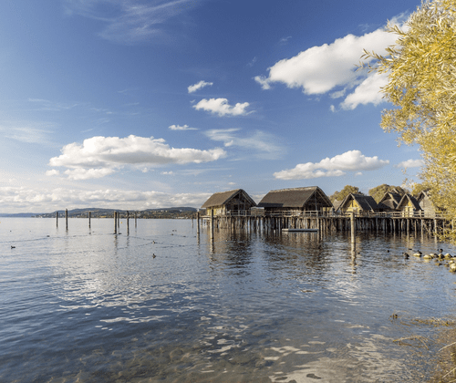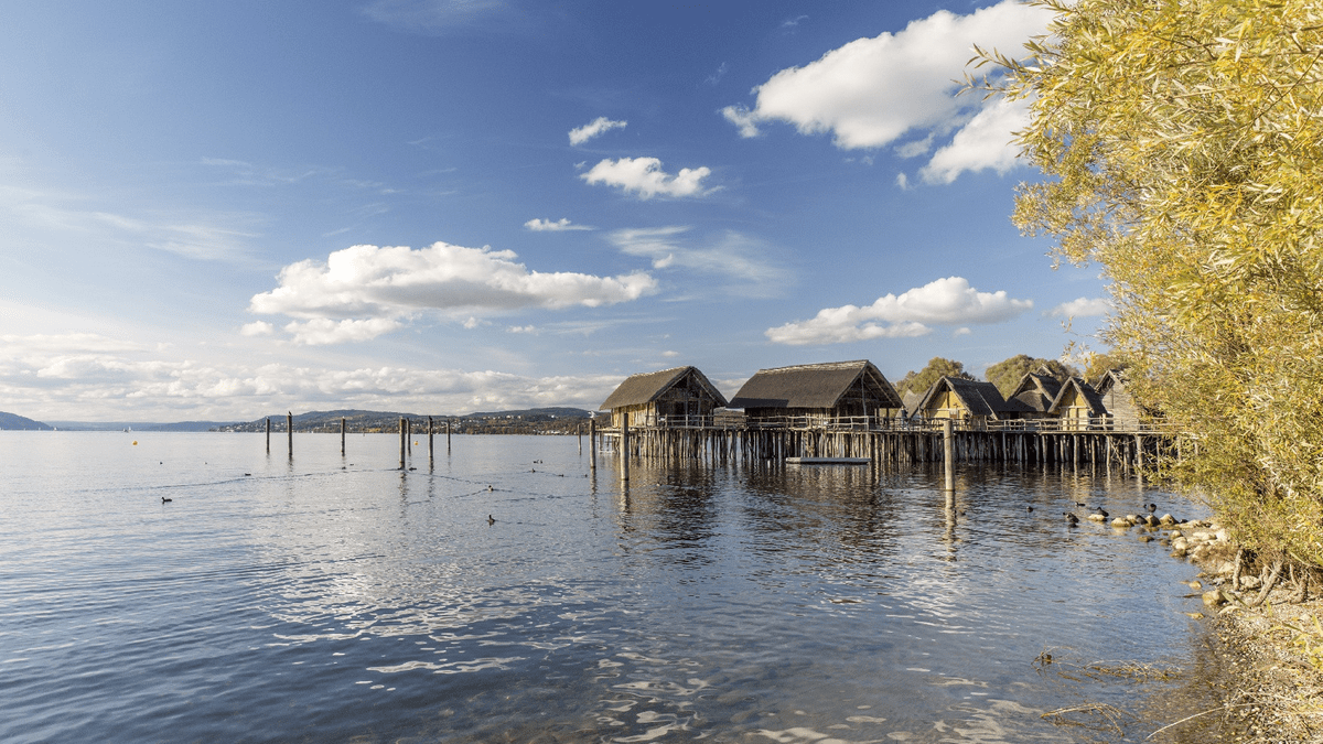 03. November 2025 bis Ende März 2026, Mo bis Fr (ausgenommen 22. Dezember 2025 bis 06. Januar 2026) Ihr Besuch beginnt in der Ausstellung „Spuren der Pfahlbauer“ im Neuen Museum am See, in dem einige der schönsten Originalfunde aus dem UNESCO-Weltkulturerbe der Pfahlbauten gezeigt werden. Hier sehen Sie Handwerk und Kunst der Pfahlbauer, Wandmalereien, komplett erhaltene Steinbeile, 5000 Jahre alte Äpfel und den Alleskleber, aus dem man auch Kaugummis herstellte. Im Anschluss erwartet Sie eine rund 45-minütige Führung durch die rekonstruierten Dörfer der Stein- und Bronzezeit (4000-850 v. Chr.). Auf Holzstegen begleiten wir Sie in die originalgetreu eingerichteten Pfahlbauhäuser auf dem Wasser, in denen Sie alles Wichtige über das Leben von damals erfahren.