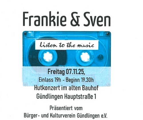 Frankie & Sven: Listen to the music Frankie & Sven spielen ihr Programm "Listen to the Music" im Rahmen eines Hutkonzerts Präsentiert vom Bürger- und Kulturverein Gündlingen e.V.