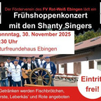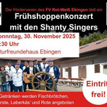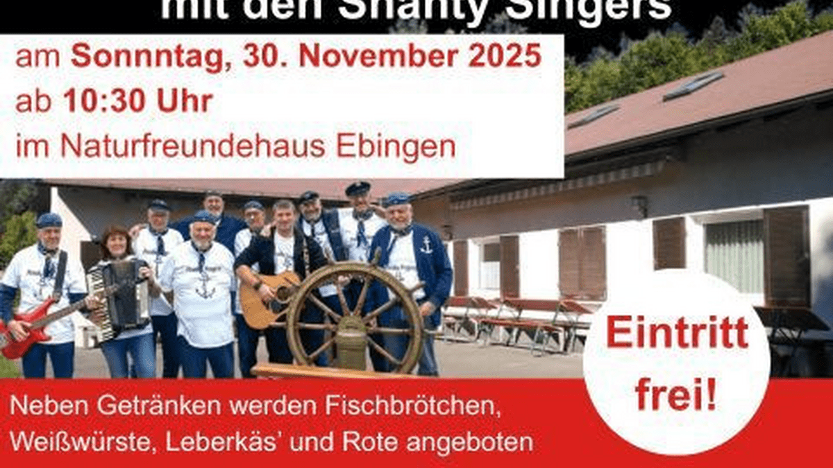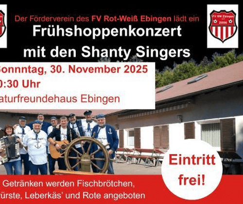 Auf dem Frühschoppenkonzert werden Seemannslieder und Shantys für alle Freunde der maritimen Musik vorgetragen. Die Shanty Singers sind eine neue Formation, die sich hier ihrem Publikum vorstellen möchte. Der Förderverein des FV Rot-Weiß Ebingen lädt alle Interessierten zu dieser Veranstaltung ein.