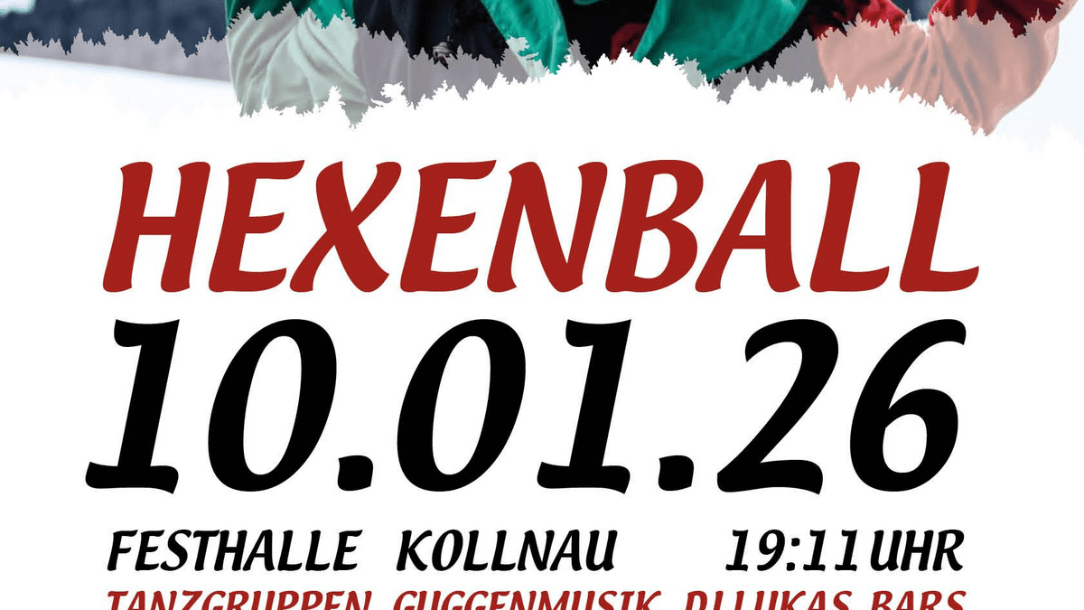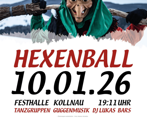 Die bunte und gesellige Fasnetveranstaltung der Stein-Krähen-Hexen Kollnau e.V. am 10.01.2026 in der Festhalle Kollnau. Buntes Bühnenprogramm mit Tanzgruppen und Guggenmusiken, breites Getränke- und Speisenangebot, Pils & Weizen vom Fass, Likörstand, Musik von DJ Lukas; wichtig: ab 18 Jahren (Ausweiskontrolle, auch für Hästräger); Es werden auf dieser Veranstaltung Bild- und Tonaufnahmen gemacht.