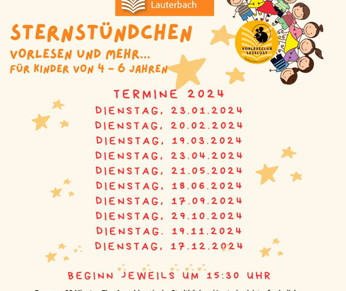 Du bist zwischen vier und sechs Jahren alt? Und hast Lust auf Geschichten? Du kannst auch schon mal eine Stunde ohne Mama und Papa verbringen? Dann bist du bei unserem “Sternstündchen” richtig!