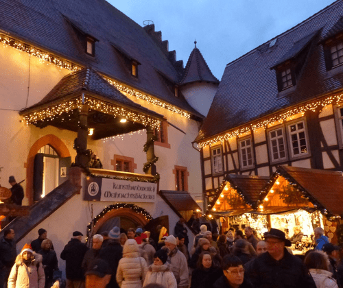 Der Michelstädter Weihnachtsmarkt besticht durch sein einheitliches Konzept. Die ca. 100 Holzbuden sind festlich geschmückt, in der ganzen Stadt hängen Tannenzweige und Lichterketten. Das besondere Highlight sind die lebensgroßen Holzfiguren, die auf dem gesamten Markt verteilt sind und teilweise als Wegweiser dienen. Sie wurden in der ansässigen Holzfachschule hergestellt und beeindrucken die Besucher aus nah und fern. Der Großparkplatz „Altstadt“ bietet Stellflächen für bis zu 50 Reisebusse und rund 1.000 Pkws. Busse parken dort kostenfrei. Öffentliche Toiletten sind vorhanden. Nach gerade mal 200 Metern steht der Gast im Herzen der Altstadt, auf dem Marktplatz mit seinem weltbekannten historischen Fachwerk-Rathaus aus dem Jahre 1484. Die Buden des Weihnachtsmarktes verteilen sich entlang der zentralen Braunstraße und in den engen Gassen der mittelalterlichen Altstadt. Zum ausgedehnten Bummel auf dem Weihnachtsmarkt laden etliche Weinstuben, Cafés und Restaurants zusätzlich zum gemütlichen Verweilen ein und machen den Besuch im winterlichen Michelstadt zu einem unvergesslichen Erlebnis. Bummeln Sie durch die inhabergeführten Ladengeschäfte, die im Wechsel mit den liebevoll mit Tannengrün dekorierten Holzhütten zu finden sind. Entdecken Sie handgefertigte Geschenke, kunstvolle Weihnachtsdekorationen und regionale Köstlichkeiten. Genießen Sie eine Tasse heißen Glühwein oder eine duftende Tasse Punsch, während Sie die fröhliche Stimmung aufsaugen.