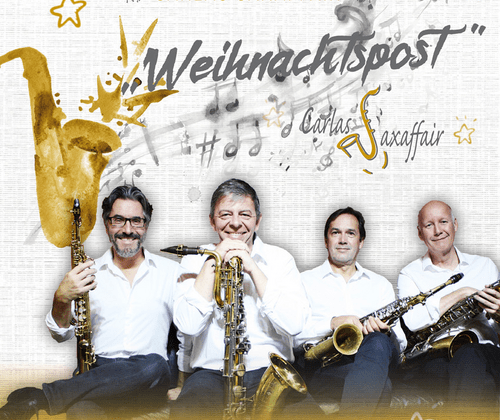 Unter dem Titel „Weihnachtspost von Carlas Saxaffair“ möchte Sie das Saxophonquartett durch den Advent begleiten. Weihnachtskonzert Wolfgang Eisele Sopran, Alto, Arrangement, Komposition Roland Brückl Tenor Fritz Rebstein Alto Stefan Dudda Bariton, Texte Unter dem Titel „Weihnachtspost von Carlas Saxaffair“ möchte Sie das Saxophonquartett durch den Advent begleiten. Wolfgang Eisele hat altbekannte Weihnachtslieder modern arrangiert. Die Klassiker erscheinen in einem neuen jazzigen oder klassisch sakralen Gewand, speziell harmonisiert, rhythmisiert und interpretiert. Jedes Lied begleitet eine besondere Geschichte, ein Gedicht oder Gedanken und Impulse. Kuriose Anekdoten, Fakten rund um Weihnachten und die Saxophon-Arrangements erlauben es dem Zuhörer, in die ganze Bandbreite der Weihnachts-und Adventszeit einzutauchen.