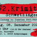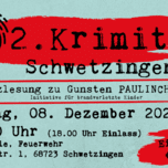 Mit dem 2. Krimitag wird das SYNDIKAT am 8. Dezember einen Hauch CRIMINALE aufleben lassen. Die Benefizlesung ist zu Gunsten PAULINCHEN e. V. .Paulinchen e.V. berät und begleitet Familien mit brandverletzten Kindern in jeder Phase nach dem Unfall. Für den guten Zweck lesen Marlene Bach - MÄNNERTRAUME Klaus Maria Dechant - ABGESANG Christian Hofbauer - DIE WEIHNAHTSCOPS AUF NORDENEY Tina Seel - DER SONDERBARE FALL DER ROSI BRUCKER Claudia Schmid - BLUMENLUST