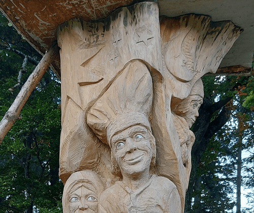 Feierliche Enthüllung der vier Meter hohen Holzskulptur "Lebkuchenbäcker". Mit einer Lesung von Heidi Knoblich. Dem Andenken an die Legende "Lebkuchenweiblein" hat der Holzbildhauer Thomas Rees aus dem Schwarzwald ein weiteres außergewöhnliches Denkmal gesetzt. Aus einer 4 Meter hohen Weißtanne aus dem Todtmooser Wald schuf er eine imposante Skulptur des Lebkuchenbäckers, die die Magie dieser alten Tradition lebendig hält. Bewirtung durch die Narrenzunft "Lebküchler Todtmoos".