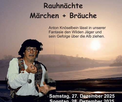 Kultur im Pferdestall: Rauhnächte – Märchen + Bräuche Der Märchen- und Geschichtenerzähler Eckardt Zehner alias Anton Knöselbein erzählt uns von Märchen und Gebräuchen der Rauhnächte. Knecht Ruprecht, Frau Holle, der Wilde Jäger mit seinem Gefolge werden uns in unserer Fantasie begleiten. Die Sonnenalb-Kutscher sorgen für Getränke und Würste vom Grill.