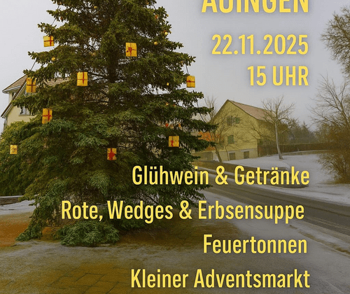 Christbaumstellen auf dem Dorfplatz in Auingen 0 Uhr