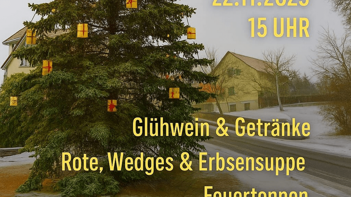 Im Angebot gibt es: Rote Wurst wilde Kartoffeln Punsch & Glühwein Waffeln Bastelaktion für Kinder kleiner Adventsmarkt mit Kränze