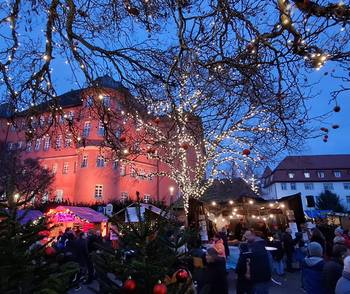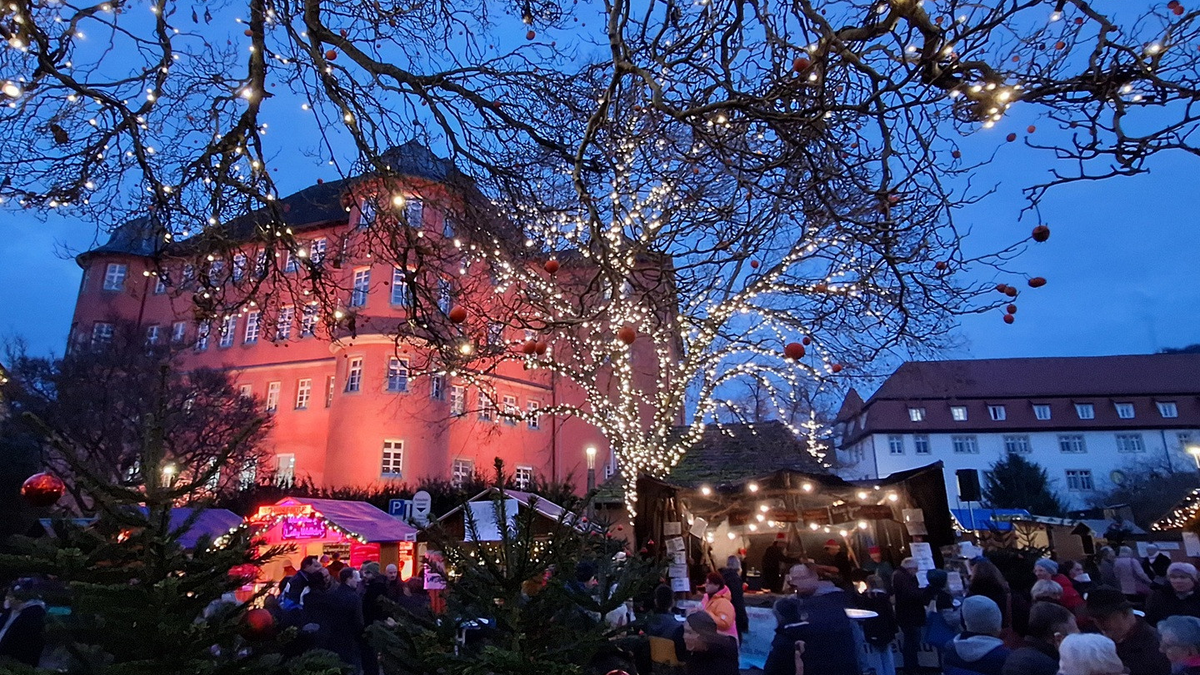 Liebevoll gestaltete Handwerkerstände, winterliche Düfte und ein festliches Bühnenprogramm stimmen dich auf die schönste Zeit des Jahres ein. Vom 3. bis 7.12.25 lädt dich der festlich geschmückte Schlossplatz in Künzelsau zu einer Reise durch funkelnde Lichter, handgefertigte Unikate und musikalische Höhepunkte ein. An fünf Tagen betreuen über 40 Gruppen – von Schulklassen und Vereinen bis hin zu Kunsthandwerkern – mehr als 30 liebevoll geschmückte Stände . Ein abwechslungsreiches Rahmenprogramm sorgt dabei für echte Weihnachtsstimmung. Mittwoch, 3.12.25: 18:00 Uhr Eröffnung durch Bürgermeister Stefan Neumann mit Stadtkapelle und Vokalensemble 20:00 Uhr Live-Musik mit Shadow Acoustics Donnerstag, 4.12.25: 16:00 Uhr Liedbeitrag Kindergarten Weckrain 16:45 Uhr Musik mit Zweiklang 18:15 Uhr Chor Voice Village 19:30 Uhr Gesang mit Ines Weidenbacher Freitag, 5.12.25: 16:00 Uhr Chor Primarstufe Anne-Sophie Schule 16:45 Uhr Weihnachtsmann trifft Osterhase 17:45 Uhr Albhornbläser Schwäbische Franken 19:30 Uhr Michael Breitschopf und Wolfgang Sing Samstag, 6.12.25: 14:00 Uhr Prinzessin Gisela Theater 15:30 Uhr Kinderchor Jugendmusikschule, Leitung Susanne Koch 16:30 Uhr White Roses - Tribal Style Dance 17:30 Uhr Posaunenchor Kocherstetten 19:00 Uhr Live-Musik mit Eddy Danco Sonntag, 7.12.25: 11:30 Uhr Turmbläser Künzelsau 12:00 Uhr Holm & Band 14:00 Uhr Griechischer Tanz- und Kulturverein 15:00 Uhr Zauberhafte Geschichten mit dem Weihnachtsmann 16:00 Uhr Hanl-Saußele-Guitar-Duo Auf dem weihnachtlich beleuchteten Vorhof öffnen regionale Produzenten und kreative Handwerker ihre Stände. Dort zeigen sie ihre mit viel Liebe zum Detail gefertigten Kunstobjekte und Geschenkideen . Dich erwarten außerdem winterliche Düfte, wärmende Getränke und kulinarische Köstlichkeiten, die von ortsansässigen Gastronomen und Vereinen liebevoll zubereitet werden. Glühwein und Punsch für einen guten Zweck Seit vielen Jahren setzt sich die Aktion „Menschen in Not“ der Heilbronner Stimme für Menschen in der Region ein, die sich in außergewöhnlichen Notlagen befinden. Auch der TSV Künzelsau ist wieder dabei und bietet am 4.12.25 Glühwein, Punsch und Tannenkränze zugunsten dieser Aktion an. Landrat Ian Schölzel, Bürgermeister Stefan Neumann und die Sportkreisvorsitzenden werden die Getränke persönlich ausschenken. Begleitet werden sie dabei von der Heilbronner Stimme und der Sängerin Madeline Willers. Unserer Umwelt zuliebe Du kannst dir auf dem Weihnachtsmarkt die städtischen Tassen und Speisebehälter vom Mehrwegsystem „Local to go“ für 3 Euro Pfand ausleihen. Die Initiative „Einmal ohne, bitte“ ruft dich dazu auf, deine eigenen Behältnisse mitzubringen und so gemeinsam Müll zu vermeiden. Um den Deko-Weihnachtsbäumen, die für den Weihnachtsmarkt genutzt werden, ein zweites Zuhause zu schenken, stehen diese am Sonntag ab 18 Uhr für 20 Euro zum Erwerb bereit. Komm direkt an der Bühne vorbei und nimm dir deinen Wunschbaum mit nach Hause . Freue dich auf weihnachtliche Stimmung, tolle Gesellschaft und magische Momente beim Advent am Schloss.