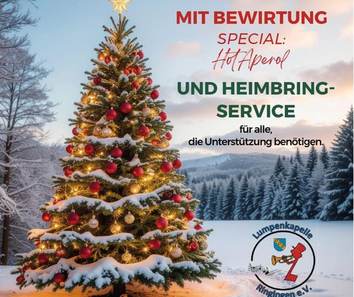 Die Lumpenkapelle Ringingen e. V. präsentiert: Weihnachtsbaumverkauf mit Bewirtung Mit Bewirtung und Heimbringservice. Vorbestellung bei allen Mitgliedern der Lumpenkapelle Ringingen möglich.