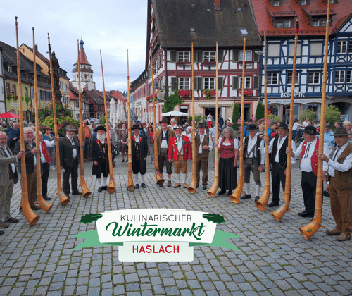 Fast täglich spielen von 16 - 22 Uhr Live Bands auf dem Kulinarischen Wintermarkt und sorgen für weihnachtliche Stimmung.Die Alphornfreunde Mittlerer Schwarzwald sorgen mit ihren klangvollen Alpenmelodien für eine ganz besondere Atmosphäre auf dem Kulinarischen Wintermarkt. Bei guter Musik, Glühwein und kulinarischen Köstlichkeiten die Weihnachtsstimmung in Haslach genießen! Hier das weitere musikalische Programm zum Kulinarischen Wintermarkt: Dienstag, 30.12., ab 19.00 Uhr: Hirtensingen im Goldenen Winkel Mittwoch, 31.01., - Ruhetag, kein Wintermarkt Donnerstag, 01.01., 18.00 - 21.00 Uhr: Die Bernhards Freitag, 02.01., 18.00 - 21.00 Uhr: Silke Vogt und Sebatian Schnitzer Samstag, 03.01., 18.00 - 21.30 Uhr: Knock Out Sonntag, 04.01., 18.00 - 21.00 Uhr: Trio Heart Beat Montag, 05.01., 18.00 - 21.30 Uhr: Sebatian Schnitzer Dienstag, 06.01., 18.00 - 21.30 Uhr: KAMA