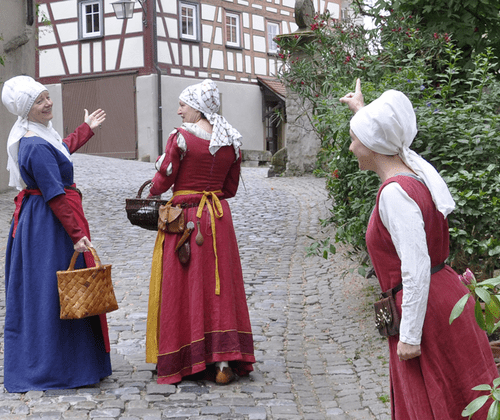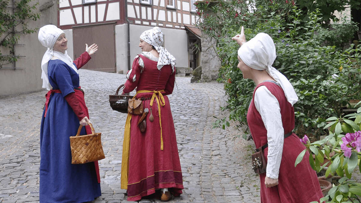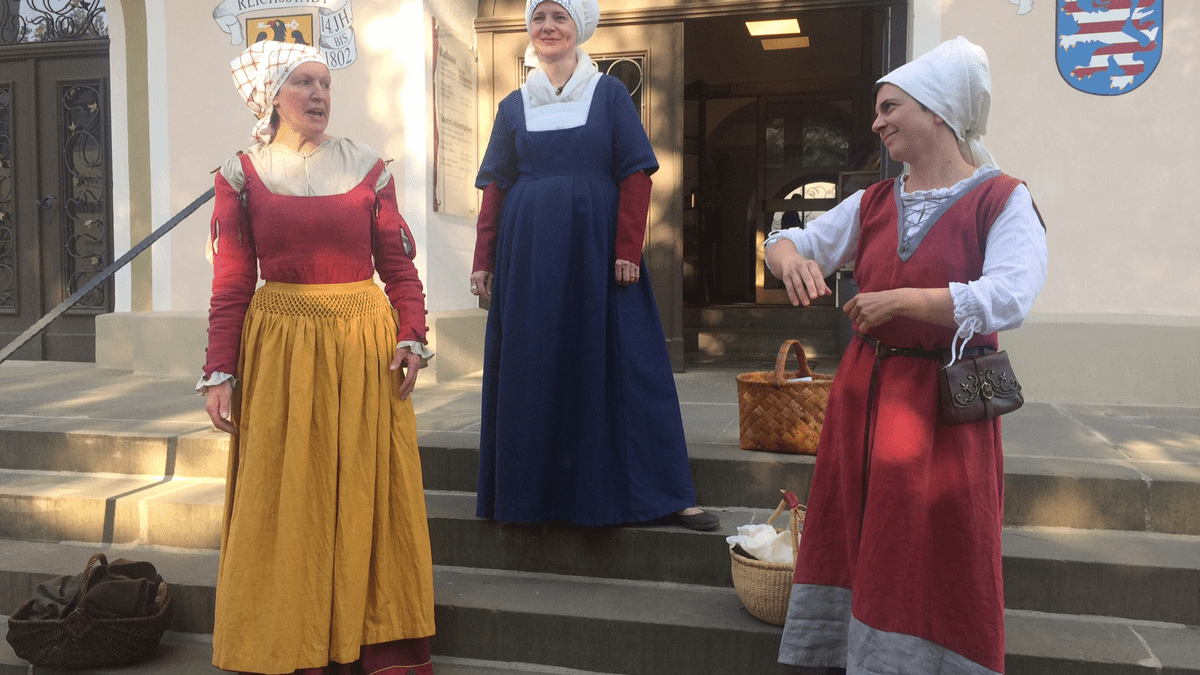 Ein humorvoller Rundgang durch Wimpfen: Töpfersfrau Adelheid und Haushälterin Agnes suchen einen Esel – mit viel Klatsch, Tratsch und mittelalterlichen Sprichwörtern. **Einem geschenkten Gaul | Szenische Erlebnisführung** Töpfersfrau Adelheid und Agnes, die Haushälterin des Pfarrers, suchen im mittelalterichen Wimpfen nach einem störrischen Esel. Mit reichlich Klatsch und Tratsch und gespickt mit unzählgen Sprichwörtern machen sich beide in den malerischen Altstadtgassen auf die Suche nach dem verlorenen Langohr. Freuen Sie sich auf einen humorvollen Rundgang - Sie wollen Ihnen doch **"keine Korb geben"** oder Sie **"im Stich lassen"**? **"Zeigen Sie Flagge"** und **"greifen Sie ihnen unter die Arme"**. ### Inkludierte Leistungen - Szenische Erlebnisführung mit den Wimpfener Weybern - Führung im historischen Gewand - inkl. ÖPNV-Ticket für das regionale Streckennetz Weitere Hinweise - Dauer ca. 1,5 h - Beginn der Führung ab Bahnhof Bad Wimpfen - Tickets [online buchen](https://eveeno.com/stadtfuehrungen-badwimpfen) - max. Teilnehmerzahl 25 Personen - Ermäßigung mit Gästekarte Bad Rappenau/Bad Wimpfen - bewegt-Plus Partner: bei Vorlage eines tagesaktuellen bwtarif-Tickets erhalten Sie eine Vergünstigung ### Sonstiges - Für Gruppen auch zum Wunschtermin ganzjährig individuell buchbar ### Tipp - kostenlose Anreise mit dem ÖPNV Bei Vorausbuchung der öffentlichen Stadtführung ist im Ticket die An- und Abreise mit dem ÖPNV im gesamten Streckennetz des HNV inklusive.