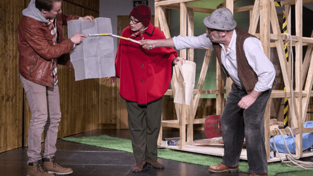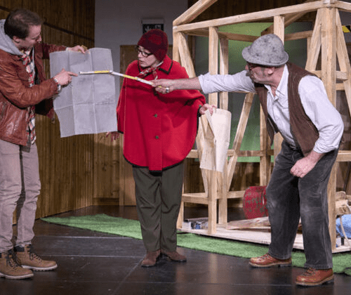 Eine moderne Farce. Von Edith Ehrhardt nach dem Film von Andreas Geiger Andreas erbt in seinem Heimatdorf von seinem Großvater eine Wiese mitsamt einer Hütte. Doch bald muss er feststellen, dass die Hälfte der am Waldrand gelegenen Hütte gar nicht auf seinem Grundstück steht. Da hat sich der Großvater vor 80 Jahren beim Hüttenbau wohl um vier Meter vertan. Das wäre alles kein Problem, hätte den angrenzenden großen Gemeindewald nicht ein reicher Unternehmer gekauft, um daraus sein privates Jagdgebiet zu machen. Für Andreas beginnt ein Kampf gegen die Macht des Geldes, Besitzanspruch, Gesetzgebung und Behördenapparat. Weder das Bauamt, die Justiz, der Bürgermeister, der Stammtisch oder die Kirche haben Ideen, wie man zu einer einvernehmlichen Lösung finden und damit die Hütte erhalten könnte. Am Ende droht der Abriss, doch Andreas ist erfinderisch und gibt nicht auf.