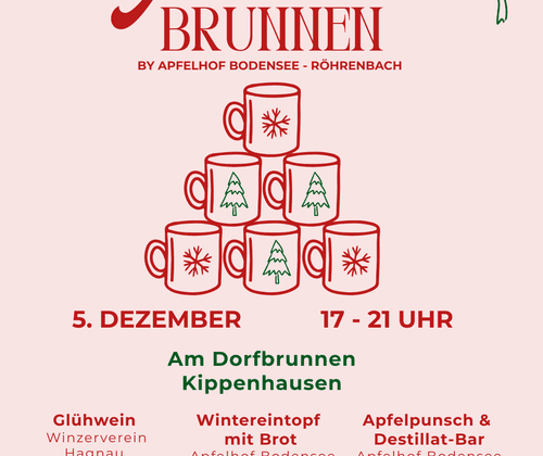 Am 5. Dezember von 17–21 Uhr lädt der Apfelhof Bodensee zum Glühweinbrunnen am Dorfbrunnen Kippenhausen ein. Mit Glühwein, Apfelpunsch, Destillat-Bar und Wintereintopf. Der Gewinn geht an AMALIE, den ambulanten Kinderhospizdienst Bodenseekreis. Der Apfelhof Bodensee lädt am 5. Dezember von 17 bis 21 Uhr herzlich zum Glühweinbrunnen am Dorfbrunnen in Kippenhausen ein – ein vorweihnachtliches Zusammenkommen für Einheimische und Gäste. Es gibt wärmenden Glühwein vom Winzerverein Hagnau , aromatischen Apfelpunsch , eine feine Destillat-Bar sowie herzhaften Wintereintopf mit Brot vom Apfelhof Bodensee und Obsthof Ragg. Euch erwarten festliche Lichter, weihnachtliche Musik und eine gemütliche Atmosphäre, in der man sich austauschen und gemeinsam die Adventszeit genießen kann. Der gesamte Gewinn kommt AMALIE – dem ambulanten Kinderhospizdienst Bodenseekreis – zugute. Ein Abend voller Genuss, Gemeinschaft und gelebter Vorweihnachtsfreude – für einen guten Zweck.