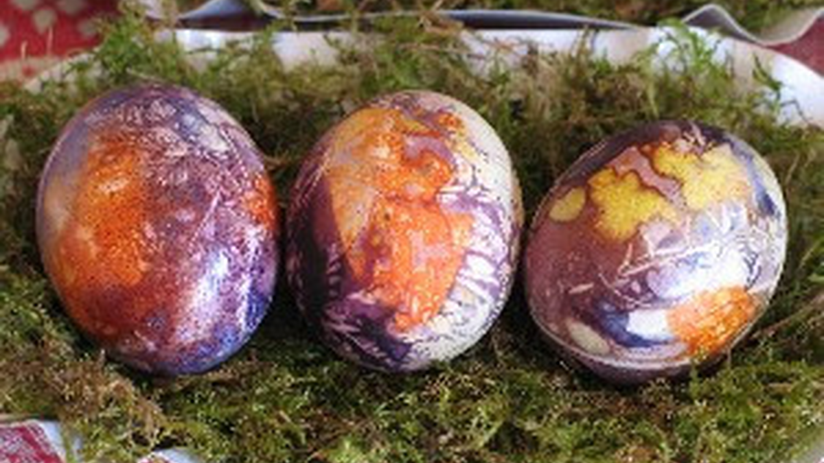 Ostereier färben nach alter Tradition: Gemeinsam mit der Trachtengruppe Trossingen werden Eier kunstvoll mit Pflanzenmotiven verziert.
