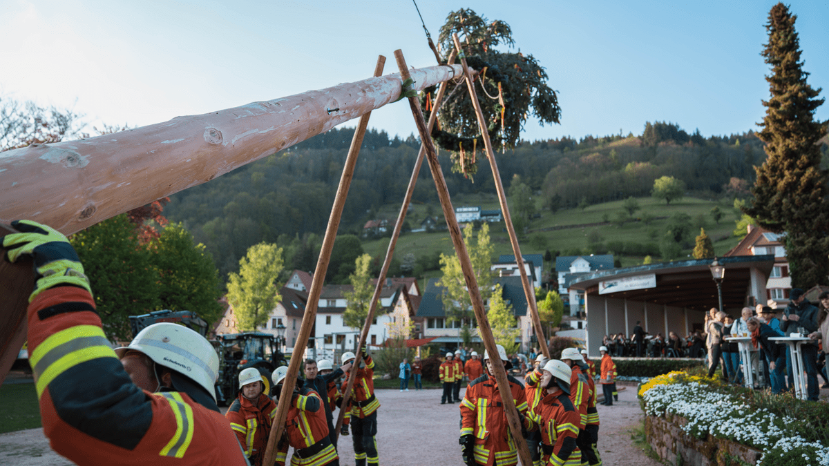 Maibaumstellen in Ottenhöfen mit der Freiwilligen Feuerwehr Ottenhöfen Der Maibaum, ein Symbol für Liebe, Zuneigung, Lebensfreude und Fruchtbarkeit, wird gemäß alter Tradition mit viel Schwung und Freude in die Höhe gehievt. Die Feierlichkeiten setzen sich um 19:00 Uhr im idyllischen Kurpark Ottenhöfen im Schwarzwald fort. Hier sorgt die Kurkapelle Ottenhöfen für den musikalischen Rahmen und eine stimmungsvolle Atmosphäre. Die Besucher können sich zudem auf eine herzhafte Bewirtung durch den Ottenhöfener Knörpeli Verein freuen, der mit deftigen Köstlichkeiten für das leibliche Wohl sorgt. Der prachtvoll geschmückte Maibaum wird von der Feuerwehr Ottenhöfen gestellt. Ein weiteres Highlight bietet die Trachten- und Volkstanzgruppe, die mit ihren authentischen Trachten die Schönheit und Tradition der Region präsentiert. Das Maibaumstellen verbindet Tradition, Gemeinschaft und Freude – ein symbolträchtiger Akt, der zusammenführt und Verbundenheit feiert.