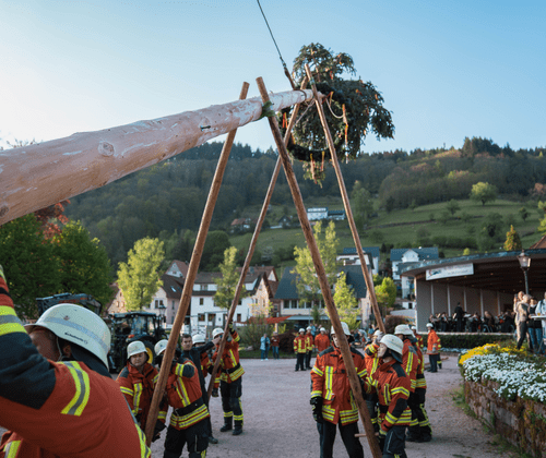 Maibaumstellen mit der freiwilligen Feuerwehr Ottenhöfen