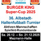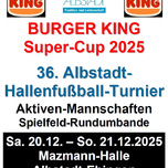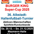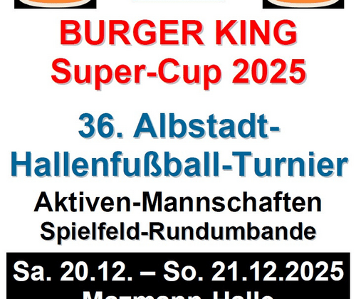 Nach fünfjähriger Pause ist es uns eine große Freude und Ehre, Sie alle herzlich zum 36. Burger King Super Cup begrüßen zu dürfen. Dass dieses traditionsreiche Turnier endlich wieder stattfinden kann, erfüllt uns mit Stolz –und auch mit einer Portion Dankbarkeit. Dankbarkeit gegenüber allen, die in den vergangenen Monaten und Jahren daran gearbeitet haben, dass wir heute hier stehen können: unseren Partnern, unseren ehrenamtlichen Helfern, unseren Unterstützern und natürlich den teilnehmenden Mannschaften. Der Burger King Super Cup hat über Jahrzehnte hinweg sportliche Qualität, faire Konkurrenz und ein herausragendes Gemeinschaftsgefühl verkörpert. Er war und ist ein Ort, an dem erfahrene Teams aufstrebende Talente treffen, an dem Leidenschaft und Teamgeist im Mittelpunkt stehen und an dem Fußball seine verbindende Kraft entfaltet. Nach der langen Pause möchten wir genau daran anknüpfen – und gleichzeitig neue Impulse setzen, um das Turnier fit für die Zukunft zu machen.Wir wünschen allen Teams spannende und faire Spiele, den Zuschauerinnen und Zuschauern tolle Fußballmomente und uns allen ein unvergessliches Turnierwochenende. Möge der 36. Burger King Super Cup ein starkes Signal für den Zusammenhalt in unserem Verein und in unserer Region sein.