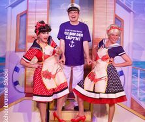 Kapitän Konstantin Schenk, Chefhostess Tamara Trojani und Matrosin Nici Neiss freuen sich, Ihnen dieses absolut trendige Reisekonzept, live im Schönbrunner Stöckl Dinner-Theater vorstellen zu dürfen. Lassen Sie sich von unserem fantastischen Bordprogramm entertainen und freuen Sie sich auf unsere mitreißende Schlagerparty mit viel, viel Spaß!!! Genießen Sie bei unserem Captain's Dinner ein viergängiges griechisches Gourmetmenü!