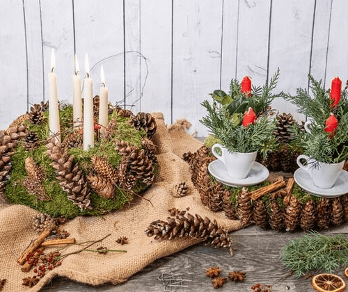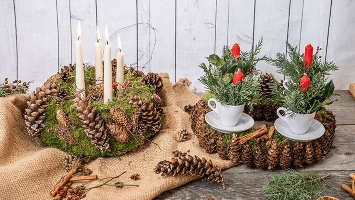 Auch die Kerzen sind bereits im Preis enthalten. Du kannst aus unterschiedlichen Formen und Farben wählen und damit deiner Gestaltung den letzten, persönlichen Akzent geben. Ein Workshop voller gemütlicher Atmosphäre, natürlicher Materialien und kreativer Freude – perfekt, um in den Advent einzutauchen.