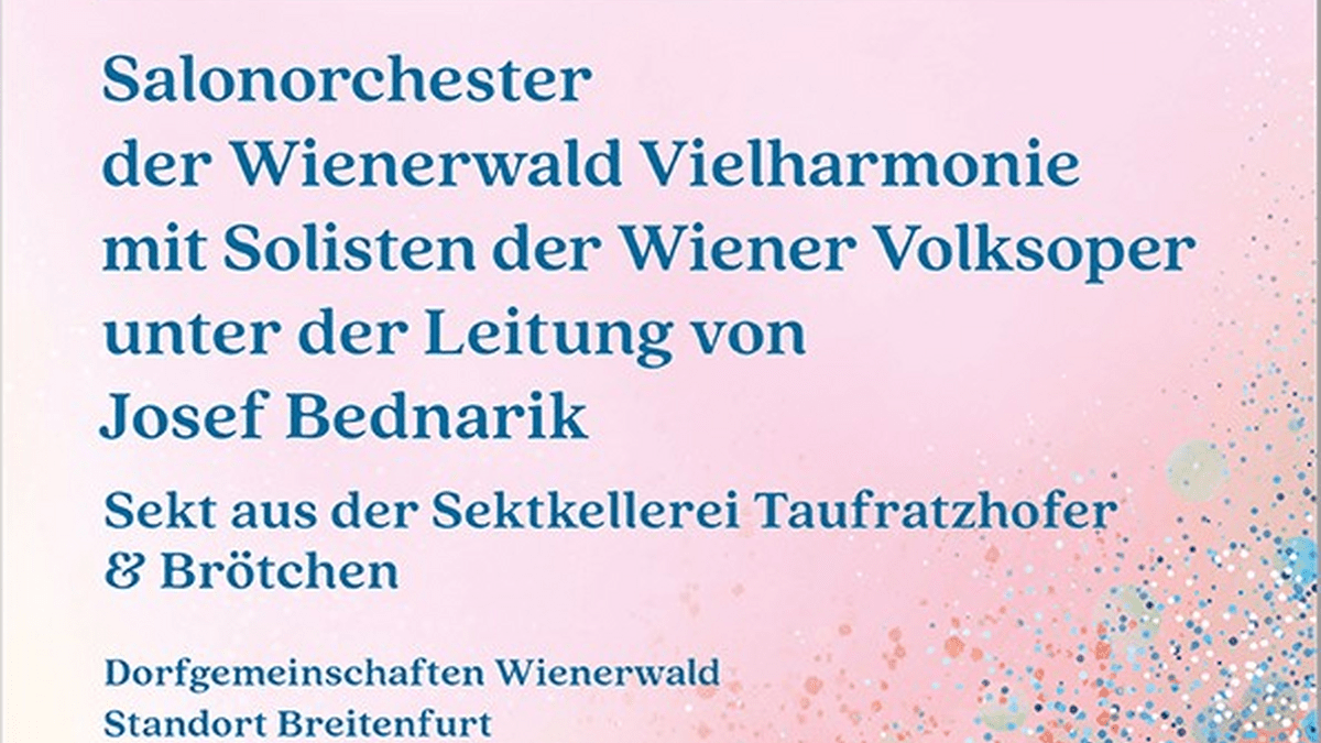 Das Salonorchester der Wienerwald Vielharmonie und Solistinnen und Solisten der Wiener Volksoper unter der Leitung von Josef Bednarik laden herzlich ein.
