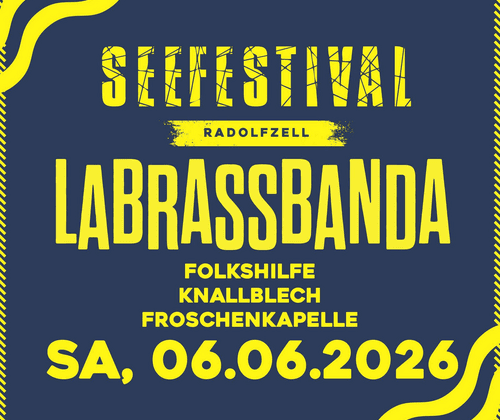 Ein unvergesslicher Sommerabend direkt am Bodensee Wenn Lederhosen auf Trompeten treffen und Blasmusik auf Balkanbeats prallt, dann ist LaBrassBanda nicht weit. Die international gefeierte Brasspop-Band aus Bayern gastiert erneut in Radolfzell und verwandelt das Konzertsegel am Bodensee in eine brodelnde Tanzfläche. Mit ihrem unverwechselbaren Mix aus bayerischem Dialekt, Ska, Reggae, Techno und Volksmusik begeistert LaBrassBanda seit über 15 Jahren ein Publikum weit über die Alpen hinaus. Ob auf dem Oktoberfest, beim Montreux Jazz Festival oder in der Münchner Olympiahalle – ihre Shows sind legendär, schweißtreibend und voller Lebensfreude. Davor wird die österreichische „Quetschn-Synthie-Mischung“ Folkshilfe auf der Bühne am Konzertsegel stehen. Ihr Erfolg basiert auf Songs, die wie Zahnräder ineinandergreifen und Geschichten erzählen, die vom Menscheln und Menschsein handeln. Folkshilfe ist eine konzeptionelle Reise, ohne sich ein Konzept aufgezwungen zu haben. Die Entwicklung der Band war von Beginn an sehr progressiv und ließ die Band immer größer werden. Fette Beats. Wilde Performance. Party pur. Das ist das Motto von Knallblech, der zweiten Band im Samstags-Lineup. 2016 als Schulband gegründet, reißen die Newcomer heute deutschlandweit alles ab, was ihnen in die Quere kommt. Die Brassband bringt bekannte Partyhymnen mit Blasinstrumenten, selbstproduzierten DJ-Beats und verrückten Choreos völlig neu auf die Bühne. Musik an, Kopf aus, ab geht’s. Eröffnet wird der Seefestival-Samstag von den Radolfzeller Lokalmatadoren der Froschenkapelle. Mit einer Mischung aus Brass, Funk und augenzwinkerndem Pop sorgt die Kultformation für ausgelassene Stimmung am Bodensee. Seit über 15 Jahren begeistert die Band mit handgemachter Musik, schrillen Outfits und einem Sound, der direkt ins Tanzbein fährt.