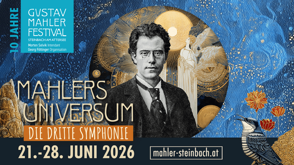 The Gustav Mahler Festival 2026 in Steinbach am Attersee takes place from June 21 to 28, 2026 and revolves around the composer's third symphony.
