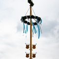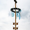 Dies passiert in mehreren einzelnen Etappen und es ist eine kräftezehrende Aufgabe. Zuvor jedoch werden die vielen geschnitzten Holzwappen der einzelnen Usselner Vereine mit ihren entsprechenden Schildhalterungen an den Stamm des Baumes angebracht. Eine schöne und zugleich repräsentative Zierde. Ebenso wird ein extra gewickelter Kranz aus Tannenzweigen mit Hilfe von Ketten weit oben am Stamm des Baumes befestigt. Dann ist der Baum zur Aufstellung bereit.