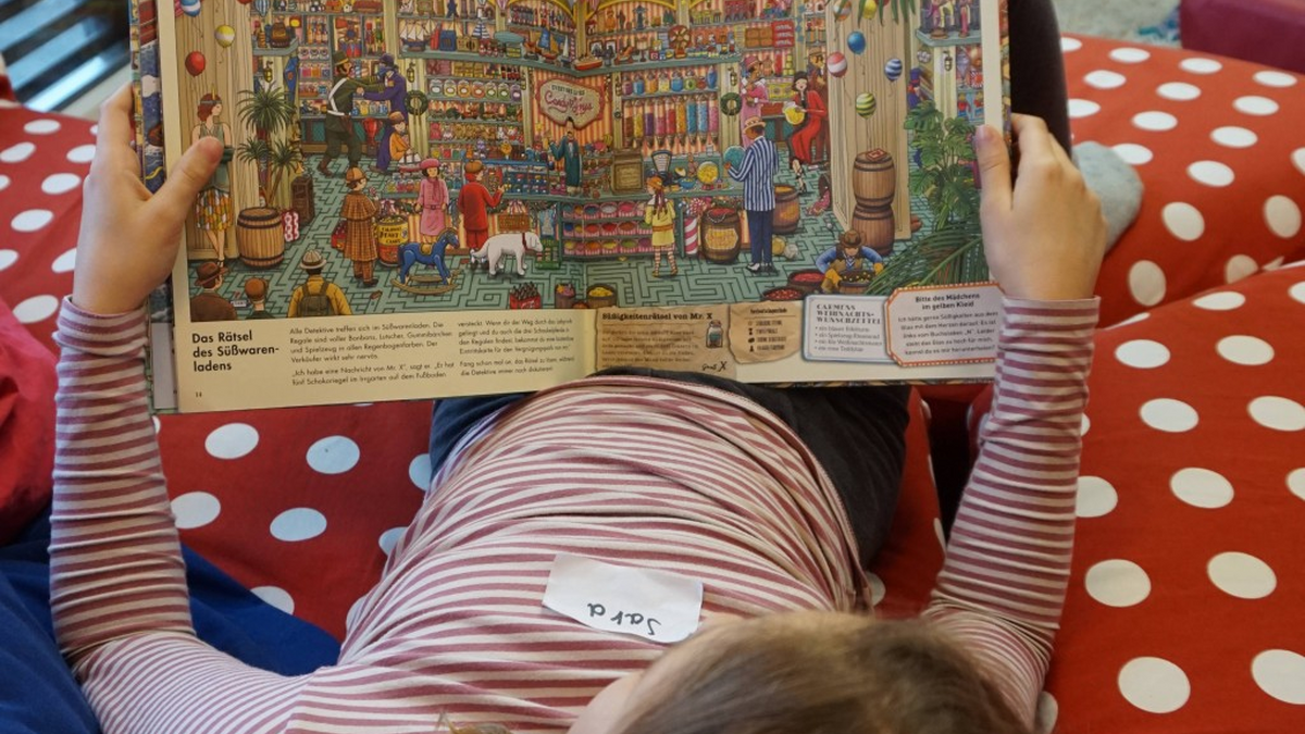 Und das Zahlenspiel auf dem Boden? Da darf gewürfelt werden, aber das Spiel wird nicht verraten, dazu muss man schon ins Kinderbuchhaus kommen und mitspielen!