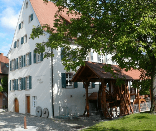 In Müllheim drehten sich früher die Räder von sieben stattlichen Mühlen. Die Bauern kamen von überall her, sogar aus dem Elsaß, um hier ihr Korn mahlen zu lassen. Noch heute können wir bei der Frick-Mühle das imposante Mühlrad bestaunen. Ein Stück entlang des Klemmbachs treffen wir auf die ehemalige Mühlenwerkstatt und lernen auf dem weiteren Rundgang die prächtigen historischen Gebäude am Markgräfler Platz und die Martinskirche kennen.