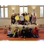 „Max und die Käsebande“ von Peter Schindler Unsere Kinder, Mädchen und Jungs, der Aufbauchorstufe (Alter ca 2. Klasse) studieren das lustige Singspiel seit Herbst ein. Die schwungvollen Lieder werden durch Solopartien und längerer Sprechrollen der Käsebande kombiniert und farbig in Szene gesetzt. Die Leitung hat Andreas Kramer, Regie führt Sandra Adiarte und am Klavier begleitet Erika Tajima.