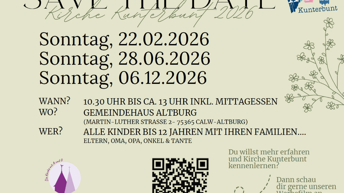 Kirche Kunterbunt | frech und wild und wundervoll Die Kirche Kunterbunt ist ein Ort, an dem Glaube kreativ wird - für Kinder, Familien und alle, die Kirche einmal ganz anders erleben wollen. https://youtu.be/8SLhCrUrEDU www.kirche-kunterbunt.de Kirche Kunterbunt ist frech und wild und wundervoll. Kirche Kunterbunt ist Kirche, die Familien im Blick hat. Kirche Kunterbunt ist Qualitätszeit für Familien und schafft Glaubensräume in denen das Evangelium mit allen Sinnen erlebt wird. Kirche Kunterbunt ist frech und wild und wundervoll. Kirche Kunterbunt ist Kirche, die Familien im Blick hat. Kirche Kunterbunt ist Qualitätszeit für Familien und schafft Glaubensräume in denen das Evangelium mit allen Sinnen erlebt wird. Dabei versteht sich Kirche Kunterbunt als eine „ fresh expressions of church “, also eine frische Ausdrucksform von Kirche. Sie hat besonders die 5 bis 12-Jährigen und ihre Bezugspersonen gemeinsam im Blick. Junge Familien, auch Paten und Großeltern können hier Gemeinde erleben, auch wenn sie bisher wenig Bezug zu Glauben und Kirche hatten. Inspiriert ist Kirche Kunterbunt von der englischen Version messy church. Kirche Kunterbunt startet mit einer einladenden Willkommens-Zeit . Danach folgt die Aktiv-Zeit mit bunten Stationen zu verschiedenen Interessen, gefolgt von der Feier-Zeit mit Musik, Theater und kreativer Verkündigung. Den Abschluss bildet die Essen-Zeit, die zu fröhlicher Tischgemeinschaft einlädt. Jede Kirche Kunterbunt steht dabei unter einem Thema oder einer biblischen Erzählung. Unsere fünf Grundwerte gastfreundlich : Wir leben eine Willkommens-Kultur und heißen Neue herzlich willkommen. Fröhliche Tischgemeinschaft ist eigentlich ein altes Kennzeichen der Christen und wird neu erlebt. Gott ist der Gastgeber, wir alle sind seine Gäste. generationenübergreifend : Erwachsene lernen von Kindern. Sie stellen oft die ehrlichen und tiefen Fragen. Kirche Kunterbunt ist kein Kinderprogramm mit Erwachsenen- Aufsicht. Bei den Stationen während der Aktiv- Zeit und bei der Feier- Zeit werden Jüngere und Ältere gleichzeitig angesprochen. kreativ : Beteiligung wird bei Kirche Kunterbunt ganz großgeschrieben. Die Grundhaltung ist nicht ein „Wir für euch“, sondern ein „Wir mit euch“. Ein gemeinsamer Lern-Raum eröffnet sich zum Entdecken des Evangeliums mit allen Sinnen und auf ganz kreative Weise. fröhlich feiernd : Kirche Kunterbunt ist eine charmant chaotische „Auszeit“ im Alltag. Gemeinsam feiern wir die Gegenwart Gottes. Wir erleben Gemeinschaft, genießen miteinander das Essen und entdecken, wie kreativ wir sind. christuszentriert : Kirche Kunterbunt ist ganz weit offen – und hat doch eine klare Mitte. Der Glaube an Christus kommt nicht belehrend daher, sondern stiftet Gemeinschaft und kann ohne Zwang ausprobiert und erlebt werden.