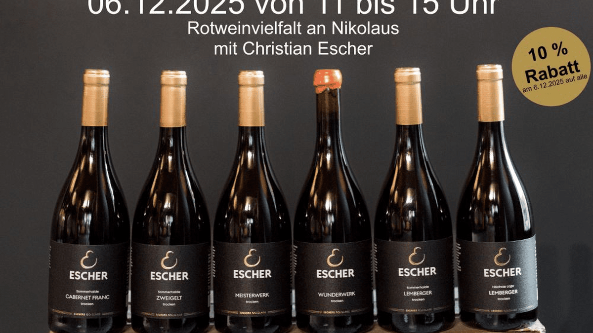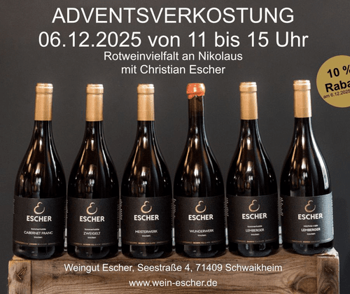 An den Adventssamstagen bietet wir Ihnen Weinverkostungen zu verschiedenen Themen an - vorbeikommen und genießen! An den Adventssamstagen, jeweils 11 - 15 Uhr, bietet wir Ihnen Weinverkostungen zu verschiedenen Themen an - einfach vorbeikommen und genießen. 6. Dezember: Rotweinvielfalt (10 % Rabatt auf die Rotweine) 13. Dezember: Wein & Käse mit Käse-Sommelière Amy 20. Dezember: Prickelnde Schaumweine Eine Anmeldung vorab ist nicht erforderlich. Wir freuen uns auf Ihren Besuch!
