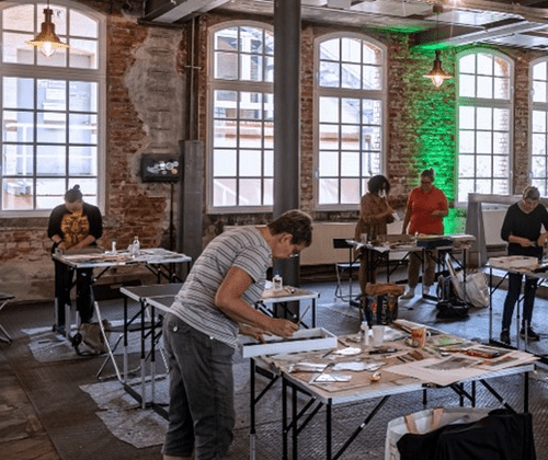 In diesem Workshop arbeiten wir mit Acrylfarbe, Papier, Pigmenten, Kreiden und weiteren Materialien auf Karton im Format 30 × 30 cm. Dabei entdecken wir unsere eigene Bildsprache, experimentieren mit verschiedenen Hilfsmitteln und entwickeln Schritt für Schritt ein individuelles abstraktes Motiv. Zum Abschluss wird mindestens ein gestalteter Karton auf einen Holzkörper (30 × 30 × 6 cm) aufgebracht – ideal zum Aufstellen oder Hängen. Im Kurs enthalten sind ein Holzkörper und Malkartons. Weitere Holzkörper können bei Bedarf vor Ort erworben werden. Bitte mitbringen: Pinsel, Acrylfarben, 2 Behälter für Farbe (z. B. großer Joghurtbecher) und Malkleidung oder Schürze, Lappen. Der Kurs ist geeignet für Anfänger (ohne Malerfahrung) und Fortgeschrittene. mit Claudia Baumgartner Aufs Malen ist Baumgartner über einen VHS-Kurs im Jahr 2006 gekommen. In der „Fabrik am See“ in Gaienhofen an der Grenze zur Schweiz nimmt Baumgartner regelmäßig an einwöchigen Seminaren teil, um sich künstlerisch weiterzubilden und neue Techniken zu erlernen. Claudia Baumgartner ist Mitglied der Künstlergruppe „Forelle blau“ aus Schiltach. Ihr Motto beim Malen ist: „Perfekt ist, wenn man frei ist.“ Um den inneren Perfektionisten zu überwinden, kennt Baumgartner einige Tricks. Interesse? Melde dich an ! Info unter www.schramberg.de >Aktuelles >Veranstaltungen >Kunst in Szene 64 oder einfach E-Mail schreiben an kunst@szene-64.de oder anrufen 0151 41641697.