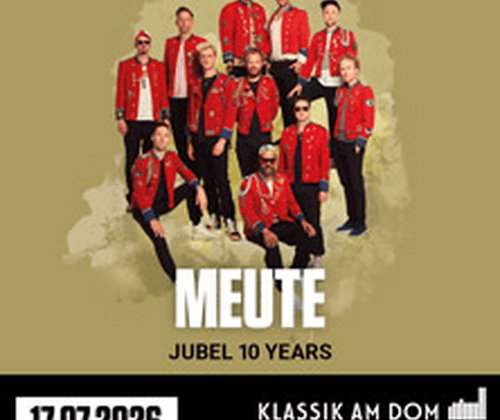 Die Band MEUTE lädt zur gemeinsamen Liebeserklärung an die letzten zehn Jahre Ausnahmezustand ein. Gemeinsam mit ihren Fans wollen sie das zehnjährige Band Jubiläum feiern. Sie haben zu diesem Anlass ihr erstes Best-of-Album JUBEL Album 2025 veröffentlicht und verlängern jetzt auch noch für uns die Europa Tournee. Am 17. Juli 2026 gibt es also richtig Grund für kollektive Euphorie und schweißgebadete Glückseligkeit am Linzer Domplatz!