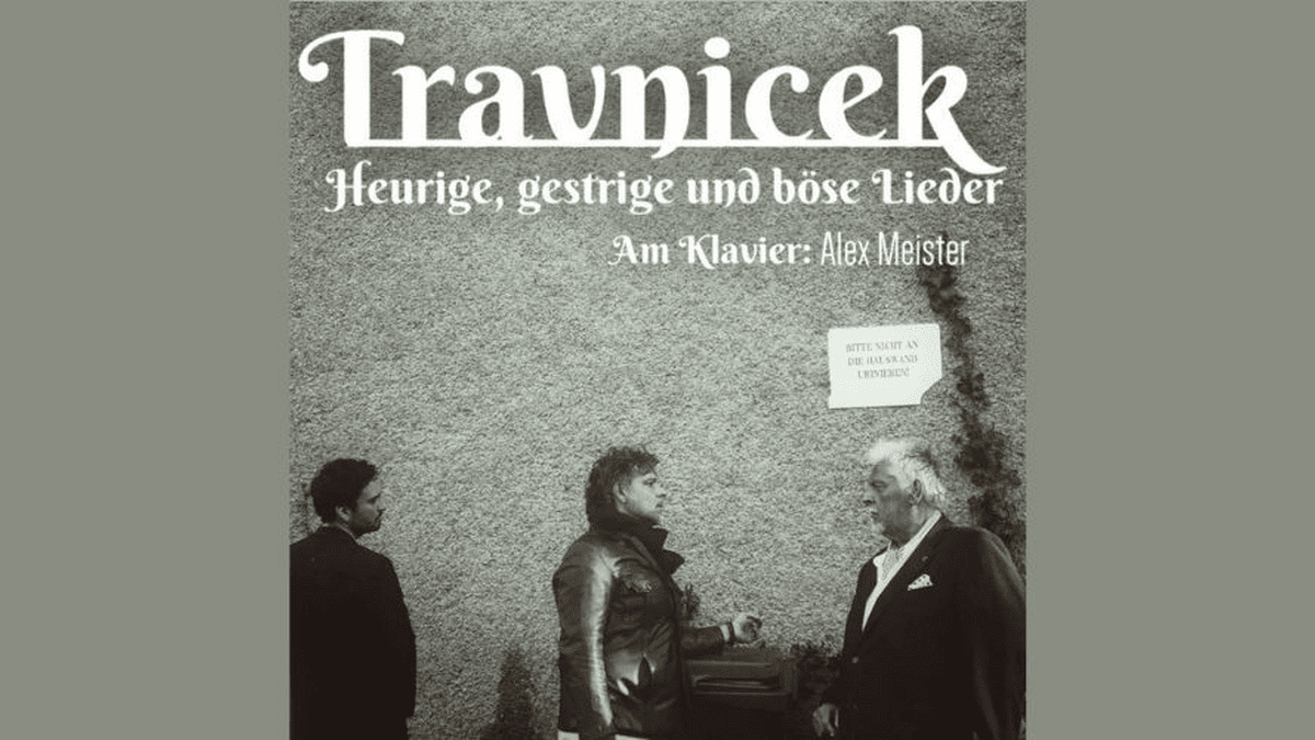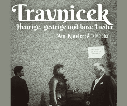 Drei Steirer, die jetzt auf Wienerlied machen?! Kulturelle Aneignung? Dürfen die das? Wahrscheinlich nicht … Sie machen es trotzdem! Peter Hassler, Benji Hassler und Alex Meister am Klavier bringen mit „Travnicek“ das goldene Wiener Herz von anno dazumal auf die Bühne. Man hört das Beste aus der Zusammenarbeit von Andrè Heller und Helmut Qualtinger (Heurige und gestrige Lieder - Geschichten aus dem Wienerwald) sowie die großen Hits von Gerhard Bronner und Helmut Qualtinger. Travniceks Dialoge dürfen in diesem Programm natürlich auch nicht fehlen.