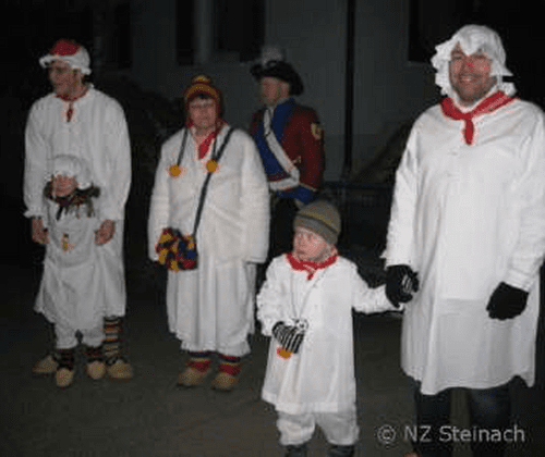 Groß und Klein, bekleidet mit weißen Nachthemden, zieht durch die Steinacher StraßenTreffpunkt ist am Rathausplatz beim Narrenkeller. Von dort setzt sich der Zug mit Musikbegleitung in Bewegung durch´s Dorf. Anschließend findet im Narrenkeller und im Partyzelt am Rathausplatz die Hemdglunker-Party statt.