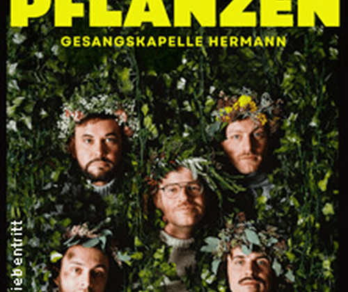 Ihr neues Programm mit dem Titel PFLANZEN treibt Blüten und Blödsinn, ist ein kindsköpfiges Stochern im Humus der Gegenwart, eine Sammlung neuer Lieblingslieder, und bietet eine Art Exit-Szenario aus dem Irrsinn der Welt ins selbstgebaute Hochbeet. Mit gewohnt musikalischem Anarchismus, irgendwo zwischen a cappella und Stadionrock, schafft es die Gesangskapelle Hermann einmal mehr, sein Publikum in einen humorvollen und unterhaltsamen Abend zu entführen, bei dem kein Auge trocken bleibt.