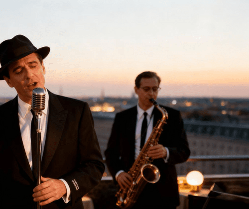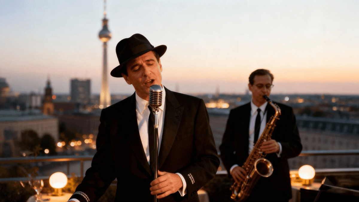 Where swing and jazz meet culinary excellence: experience a stylish Frank Sinatra tribute show, perfectly staged at the Palace Berlin. Enjoy timeless melodies and superb performances by outstanding Berlin jazz musicians. An exclusive three-course menu is served between the sets, harmoniously accompanying the evening.