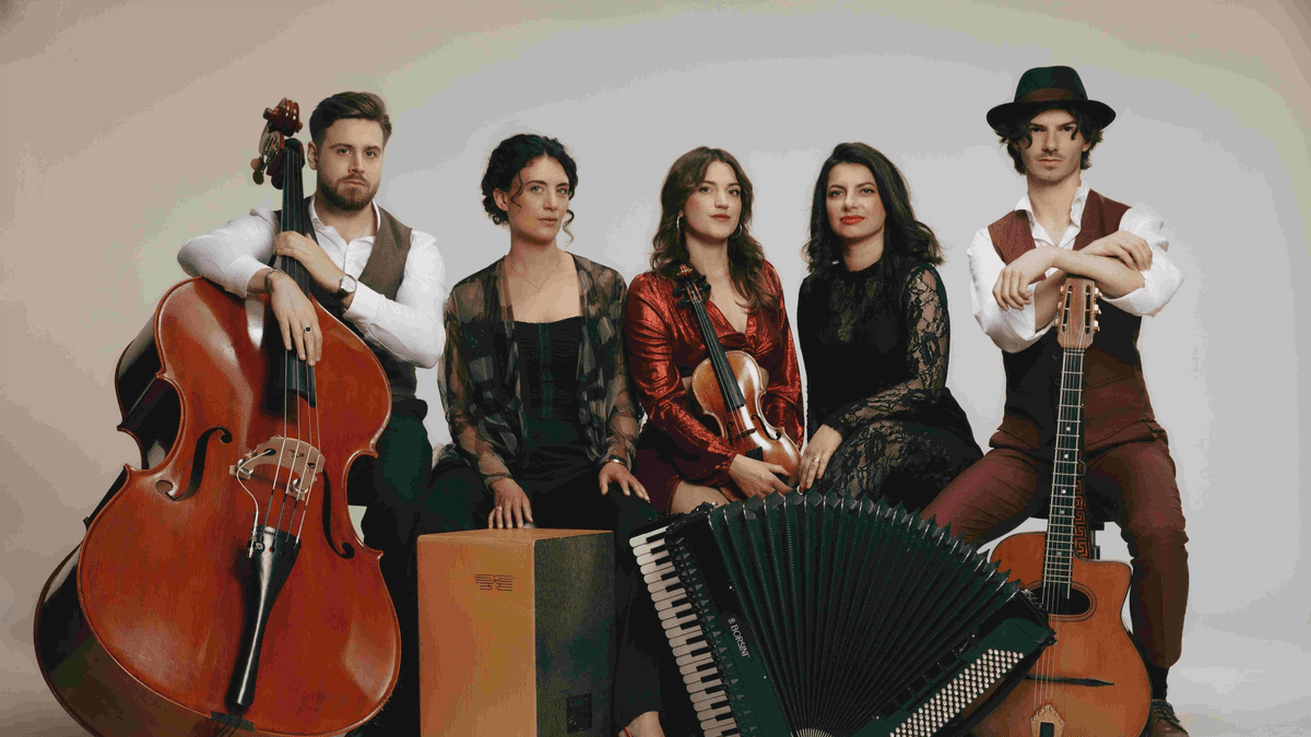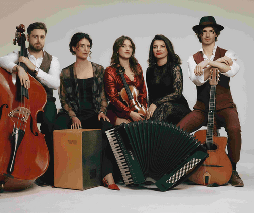 Die fünf jungen KünstlerInnen stammen aus Österreich, Montenegro und Israel und spielen seit 2022 zusammen. Ihr Repertoire reicht von wilden Balkan-Stücken, Klezmer-Tunes, flottem Swing, Gypsy Jazz und orientalischen Tänzen bis hin zu Eigenkompositionen und bietet genug Platz zur freien Improvisation. VVK/Reservierung: 22 € (erm.: 15 €)