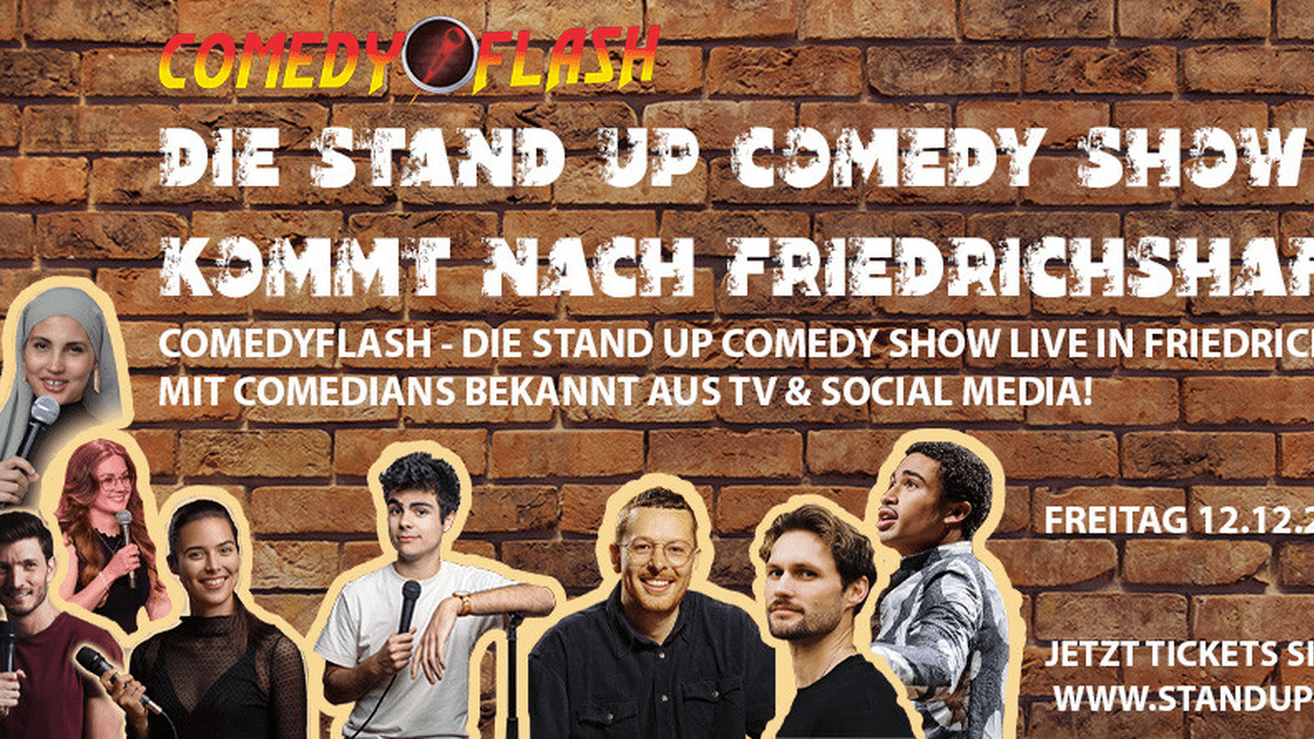 Die Veranstaltung ist ausverkauft! Comedyflash - Die Stand Up Comedy Show LIVE in Friedrichshafen! Wir zeigen euch einen Mix aus erfahrenen Profi-Comedians und den heißesten Newcomern der deutschen Comedy-Szene. Comedyflash - bekannt aus TikTok und Instagram, die junge authentische Comedy-Show. Egal wer an diesem Abend auf der Bühne steht - Euch erwartet absolut authentische Stand Up Comedy nach amerikanischem Vorbild!