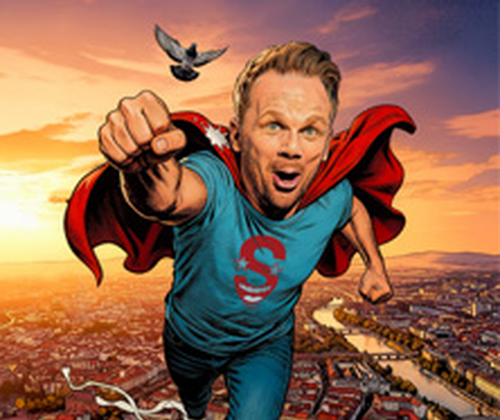 und wie ein wahrer Superheld verwandelt er unser Chaos in ein echtes Happy End!