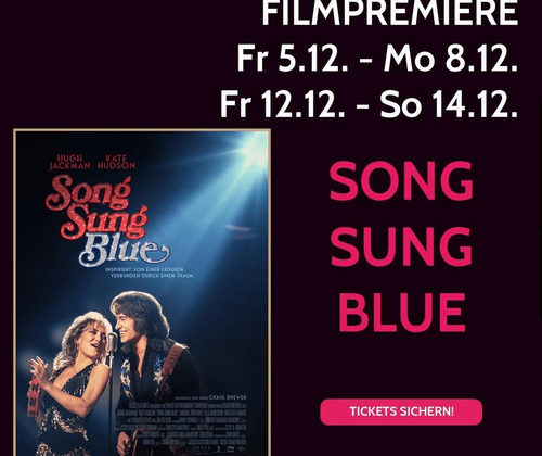Mit SONG SUNG BLUE präsentiert Regisseur und Drehbuchautor Craig Brewer (Hustle & Flow) ein mitreißendes Epos über die innige und kreative Verbindung zweier Musiker, die zeigen, dass es keine Rolle spielt, wann im Leben man sich findet – Hauptsache, Herz und Musik schlagen im gleichen Takt. Inspiriert von wahren Begebenheiten erzählt der Film die Geschichte von Claire und Mike Sardina, die es als Band „Lightning & Thunder“ von einer kleinen Garage bis in die Clubs von Milwaukee schaffen. Das Paar gelangt zu unerwartetem Erfolg, der allein auf der engen Verbundenheit zueinander beruht. Selbst als ein Schicksalsschlag alles verändert, besinnen sich die beiden auf ihre Liebe – zur Musik und zueinander.