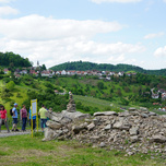 Wein, Wandern & Genuss in den Löwensteiner Bergen: 5 Stationen mit Wein von 14 Winzern & regionalen Spezialitäten. Ein Traktor-Shuttle hilft bei Höhenmetern. Weingenuss vor traumhafter Kulisse Wein über Berg und Tal, das kulinarische WeinWanderEvent in den Löwensteiner Bergen, steht für ein eindrucksvolles Erlebnis. Das Bergstädtchen Löwenstein, ein ausgezeichneter Weinsüden Weinort liegt am Rand des Naturparks Schwäbisch-Fränkischer Wald, wo die bewaldeten Höhen in das sanfte Hügelland des Weinsberger Tal übergehen - von diesem "Aussichtsbalkon" schweift der Blick weit über die Reblandschaft und den Breitenauer See bis zur Ruine Weibertreu am Taleingang. An fünf Genussstationen inmitten der Reben verwöhnen verschiedene Weingüter aus dem Weinsberger Tal gemeinsam mit der regionalen Gastronomie die Teilnehmer. An jeder Station stehen Sitzmöglichkeiten bereit, um Wein und Kulinarik bei bester Aussicht zu genießen. Die komplette Weinwanderung mit allen Stationen erstreckt sich über etwa 5 km. Ein Traktor-Shuttle zwischen den Stationen sowie ein Bus-Shuttle von der S-Bahn sind vorhanden. WeinWandern in abwechslungsreicher Landschaft Die WeinWanderung startet am "unteren Tor" am Freihaus Löwenstein, von wo aus man den Blick über das Weinsberger Tal genießen kann. Der Freihausplatz an der Stadtmauer mit seinem Fachwerk lädt zum Verweilen ein und bietet ein Panorama auf die umliegenden Weinberge. Die Route führt durch die Gärten an der alten Löwensteiner Stadtmauer und durch Schafsweiden bergab in die Weinberge, wo an der nächsten Station eine Verschnaufpause eingelegt werden kann. Weiter geht es durch die Weinberge ins "Tal" der Weintour. Eine Stärkung für die nächste Etappe ist empfehlenswert, denn es geht wieder bergauf. Vom Löwensteiner Wolfertsberg aus bietet sich ein weiter Blick in Richtung Löwenstein und hinab ins Tal. Durch den Wald erreicht man den letzten Genusspunkt am ehemaligen Löwensteiner Steinbruch, wo man hinab in das sich öffnende Weinsberger Tal blicken kann. Erlesene Weine von Spitzenerzeugern An den 5 Genuss-Stationen werden die Weine von vierzehn Winzern aus dem Weinsberger Tal ausgeschenkt - vom Klassiker bis zur exquisiten Spätlese. Die Weingüter des Weinkollegiums Weinsberger Tal sind hoch dekoriert: Den goldenen Löwen für den besten Lemberger, die Empfehlung im Eichelmann, den Bundesehrenpreis in Gold der DLG oder dem Deutschen Rotweinpreis. Sonntags und Montags gibt es noch eine 6. Genussstation mit Kaffee und Kuchen begleitet vom Musikverein. Beteiligte Weingüter: Weingut Schropp | Erlenbach, Weingut Schönbrunn | Erlenbach, Privatkellerei Klaus Keicher | Erlenbach, Weingut Haberkern-Betz | Erlenbach, Weingut Klaus Haberkern | Erlenbach, Weingut Bihlmayer | Löwenstein ,Weingut Gruber | Obersulm-Eschenau, Weingut Alexander Heinrich | Obersulm-Sülzbach, Weingut Erich Hirth | Obersulm-Willsbach, Weingut Koppenhöfer | Löwenstein, Weingut Laicher | Obersulm-Willsbach, Privatkellerei Rainer Vollert | Obersulm-Willsbach, Winzer vom Weinsberger Tal eG | Löwenstein & Eberstadt, Weingut Zipf | Löwenstein WeinSchlafen nach dem Weingenuss In Löwenstein selbst - fast direkt an der Strecke - bietet das Weingut Koppenhöfer Urlaub auf dem Winzerhof in modernen Ferienwohnungen und charmante Hexenhäuschen an. Auf dem Campingpark Breitenauer See stehen für Gäste ohne Wohnwagen oder Wohnmobil komfortable Holzblockhäuser und Mietwohnwagen zur Verfügung. Das Weingut Erich Hirth bietet moderne Gästezimmer in komfortabler Lage in Obersulm. Wer eine Ferienwohnung bevorzugt, der ist beim Weingut Laicher an der richtigen Adresse. Mit der S-Bahn und dem Bustransfer vom Festgelände gut zu erreichen: Ferienwohnung Weingut A. Heinrich | Obersulm-Sülzbach Ferienwohnungen & Wohnmobilstellplätze Weingut Laicher | Obersulm-Willsbach Weinsüden Weinort Löwenstein Das romantische Bergstädtchen Löwenstein bietet eine grandiose Aussicht über das Weinsberger Tal. Hoch über der Stadt thront die Burgruine Löwenstein , die majestätisch das Panorama prägt. Umgeben von Weinbergen, Wäldern und Seen, liegt der staatlich anerkannte Erholungsort rund 20 km südöstlich von Heilbronn im Naturpark Schwäbisch-Fränkischer Wald. Dies gilt ebenso für die idyllischen Teilorte Hößlinsülz, Reisach und Hirrweiler.