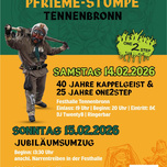 Jubiläumsfeier: 40 Jahre Kappelgeist & 25 Jahre One2Step Narrengilde Pfrieme Stumpe Tennenbronn Die Narrengilde Pfrieme Stumpe Tennenbronn lädt herzlich zum großen Jubiläum ein! Gemeinsam feiern wir 40 Jahre Kappelgeist und 25 Jahre One2Step in der Festhalle Tennenbronn. Freut euch auf eine unvergessliche Nacht mit bester Stimmung und festlicher Musik von DJ TwentyB. Außerdem sorgt die Ringerbar während der Veranstaltung für eine abwechslungsreiche Auswahl an Getränken.