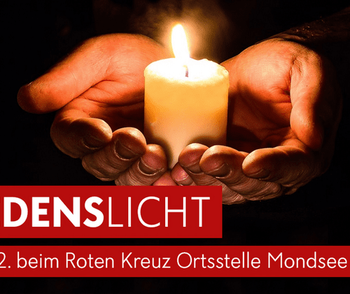 Die Aktion Friedenslicht wurde 1986 ins Leben gerufen und hat sich mittlerweile über 25 Länder verteilt. Das Friedenslicht aus Bethlehem leuchtet am Heiligen Abend in ganz Europa, in den USA und in einigen Ländern Südamerikas. Schon seit Beginn der Aktion setzt sich auch die Rotkreuz Ortsstelle Mondsee dafür ein und verteilt das Zeichen des Friedens im Mondseeland. Jedes Jahr freuen wir uns am 24. Dezember über zahlreiche Besucher, die sich das Licht für ihre Familien & Angehörigen bei uns abholen. Das Licht und die Flamme der Kerze - Ein Symbol für die uralte Sehnsucht nach Frieden. Unser Friedenslicht, das von Hand zu Hand weitergereicht wird, erinnert die Menschen, dass sie sich für den Frieden einsetzen sollen.