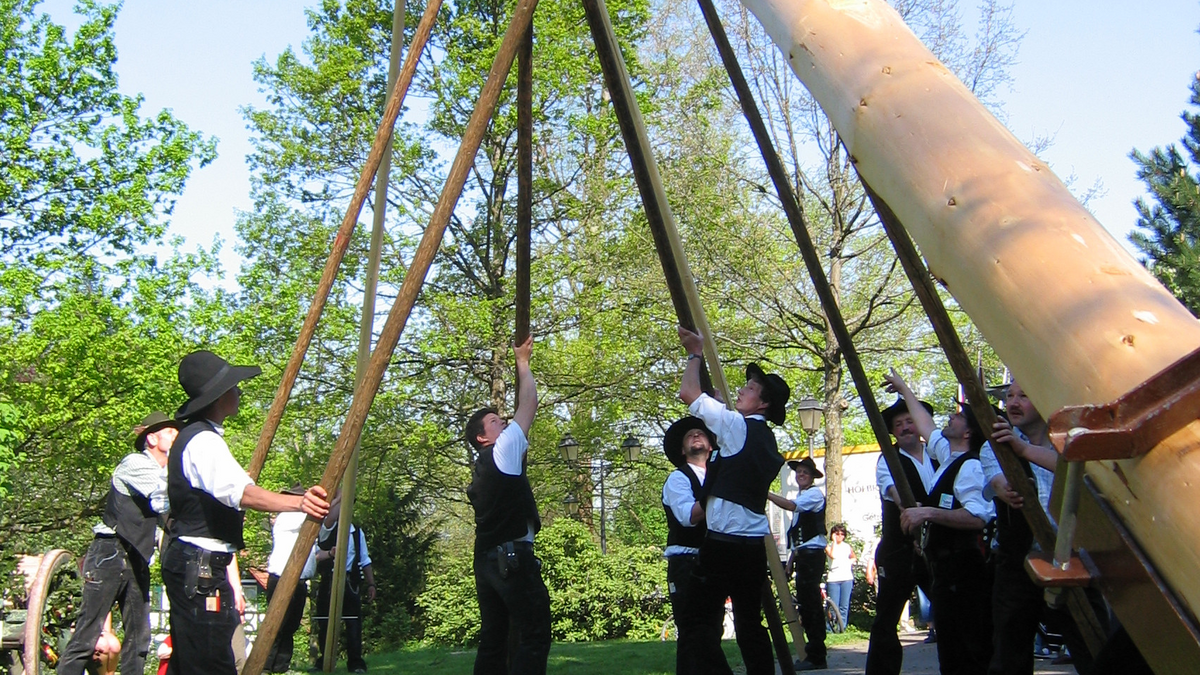 Traditionelles Maibaumstellen im Kurpark 0 Uhr