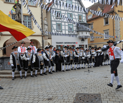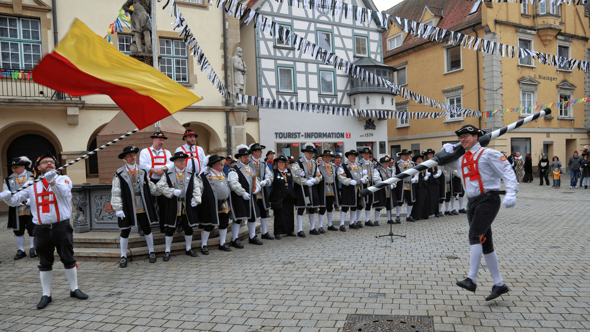 Messe für Narren & Stangenübergabe an die Bräutlingsgesellen Am Fasnetssonntag, nach der Messe für Narren, wird die Bräutlingsstange feierlich vom Zunftmeister an die Bräutlingsgesellen übergeben. Der Oberbräutlingsgeselle führt den traditionellen Rundtanz mit der Stange durch und lädt danach die ersten Bräutlinge zum Historischen Bräuteln ein. 09:30 Uhr Messe für Narren in der Stadtpfarrkirche St.Johann Sigmaringen 10:45 Uhr Übergabe der Bräutlingsstange am Marktplatz, anschließend Laden der diesjährigen Bräutlinge durch die Bräutlingsgesellen
