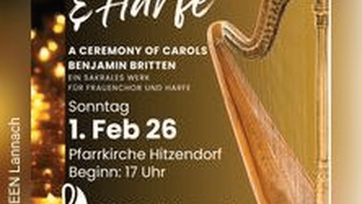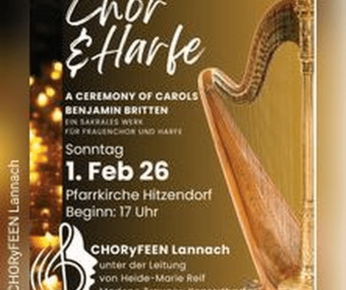 Die CHORyFEEN Lannach unter der Leitung von Heide-Marie Reif und Marlene Trauner an der Konzertharfe präsentieren mit A Ceremony of Carols von Benjamin Britten ein Werk, das man nicht alle Tage zu hören bekommt.